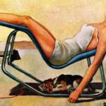 “Racing cars, illustrating, and smart clothes on good-looking women,” Whitmore said these were his three primary interests. While Whitmore the racer was simply indulging in a hobby, Whitmore the artist was a fastidious professional who, writes Reed, was “so inventive over so long a time in doing variations on the theme of ‘boy meets girl.’” Though in this 1958 illustration, he depicted what happens after boy meets girl.