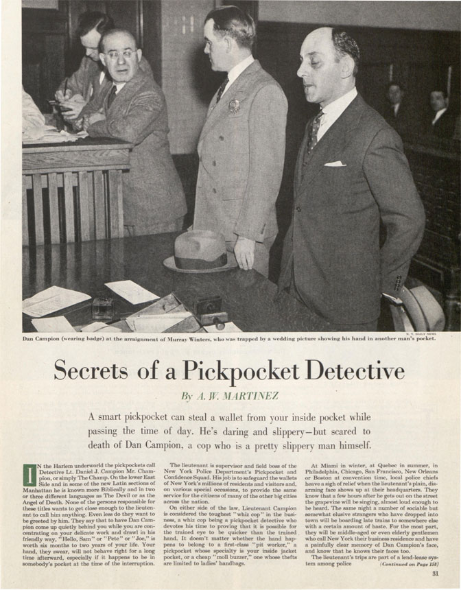 —From “Secrets of a Pickpocket Detective” by A.W. Martinez, from the October 21, 1950, issue of The Saturday Evening Post