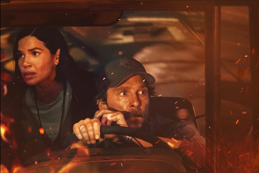 The two grownups make a great team: Kevin utilizing his backroads knowledge, Mary doing her best to keep the kids from knowing they are one fallen tree away from incineration. The stars play it absolutely straight: McConaughey’s Kevin is no hero, just a guy who’s got a steadily narrowing range of choices. Ferrera’s Mary outwardly hews to her all-for-the-children default while quietly questioning her long-ago decision to never leave Paradise.