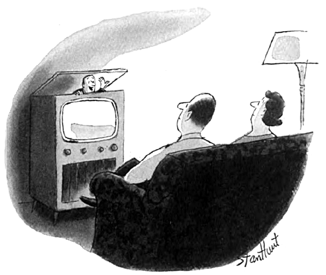 These are all great TV-related cartoons, for sure. Ouch on the first one! #2 is so honest and true, it’s funny. #3 with Edith—love it. #6 near the bottom is kind of bad if Mrs. Jones was zonked-out THAT many hours on the couch!