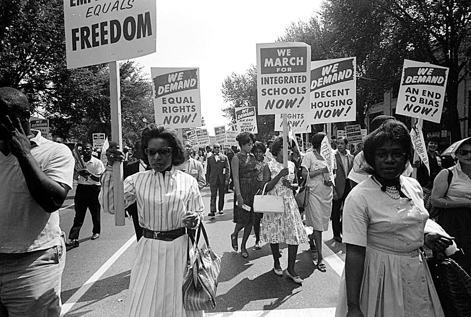 Parks was not the only one who invested in presenting a fashionable appearance. Young activists from Diane Nash to Anne Moody understood that fashion was an important means for Black women to claim access to the privileges of respectable femininity, and they used it as a tool in their struggle for civil rights. When they participated in marching, protesting, and sit-ins, Black women insisted on wearing their “Sunday best” — crisp, neat clothes and pressed hair — seeing it as a political statement of defiance against racist stereotypes that views Black people as dirty and unkempt.