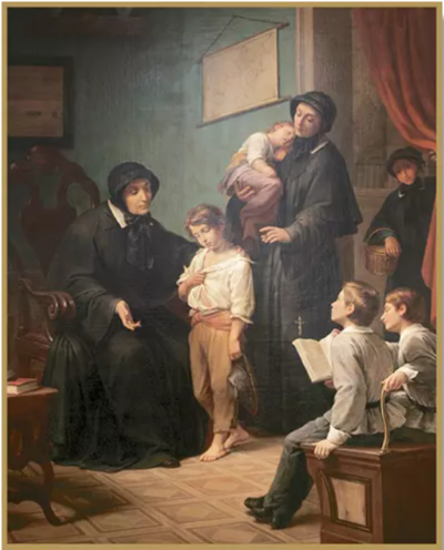 Help came from the church instead. In 1809, Bishop John Carroll asked Seton to start a Catholic school for girls on a 269-acre property near Emmitsburg, Maryland. Joined by her daughters, two sisters-in-law, and six other women, she founded the Sisters of Charity, a religious organization modeled after St. Vincent de Paul’s Daughters of Charity. Elected head of the order, Elizabeth Seton became Mother Seton.