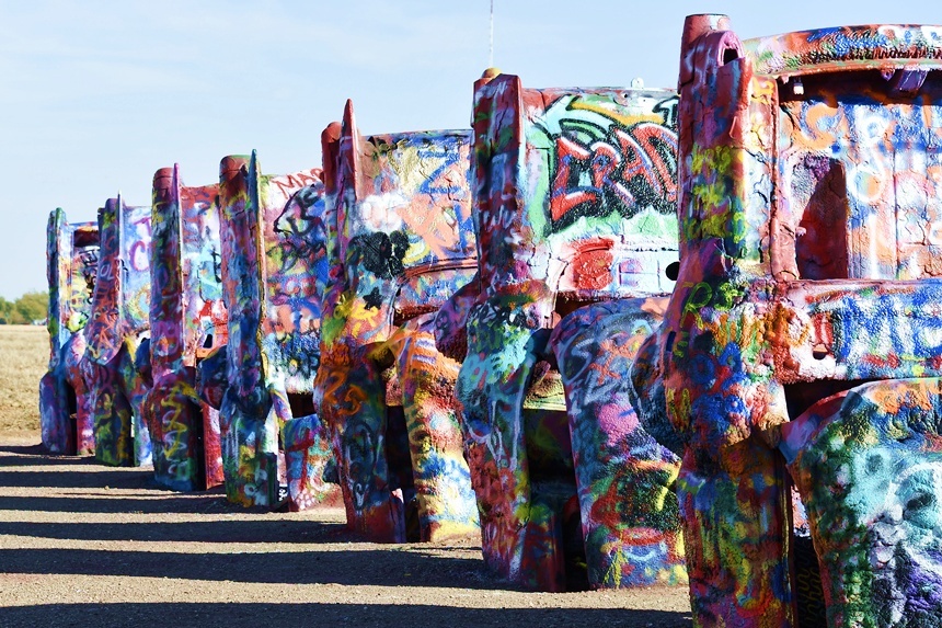 Before you leave Amarillo, stop at Cadillac Ranch. The art installation of 10 spray-painted Cadillacs buried nose-first into the ground is one of Route 66’s most iconic sites. After parking along the frontage road, you can purchase spray paint from a vendor and leave your own mark on the cars.