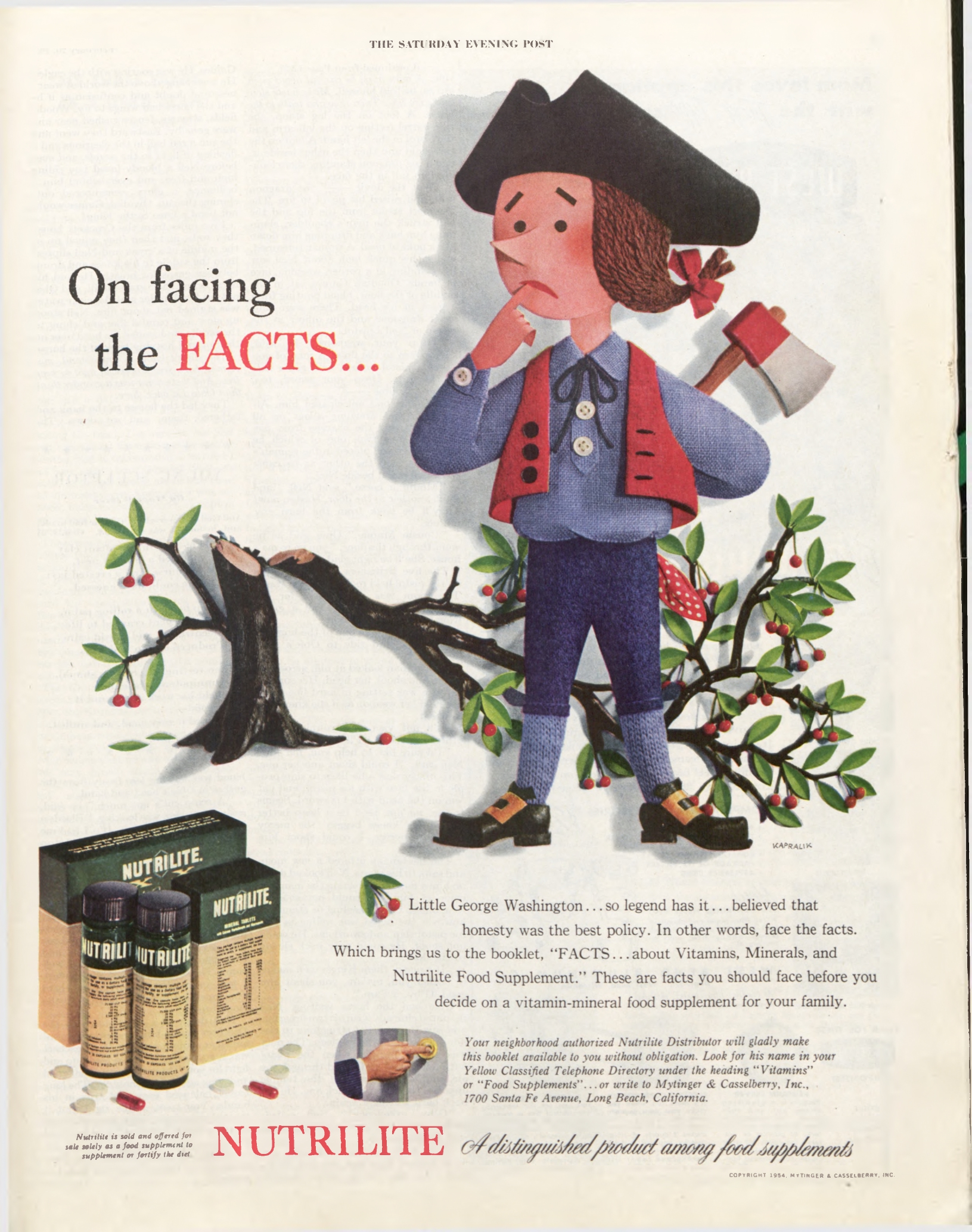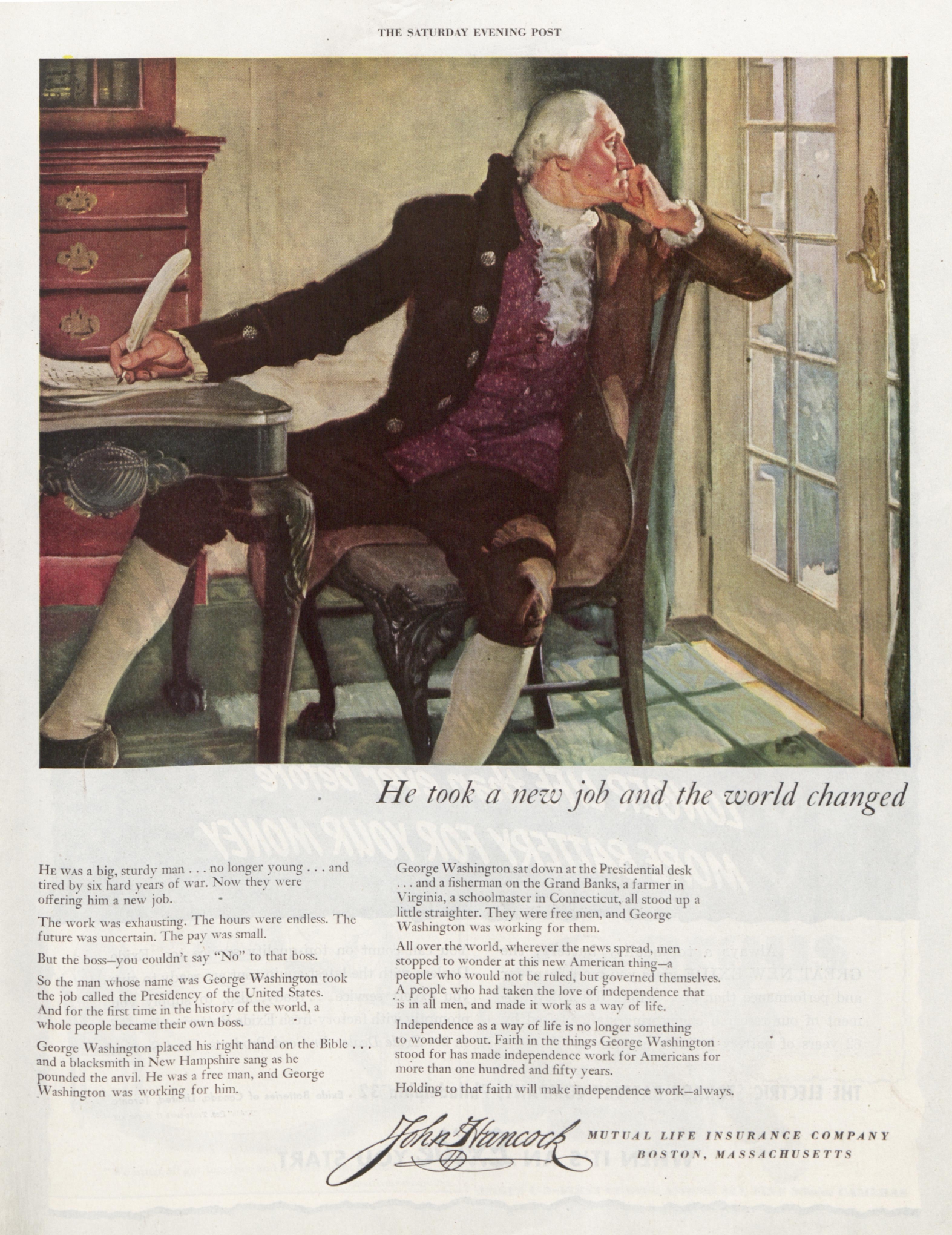 Which qualities do you associate with George Washington? Wisdom? Bravery? Steadfastness? Razor blades? Although the connection between Washington and some of these products is dubious, companies have been using his visage and his character to sell their products for more than 100 years, as shown in these advertisements that appeared in The Saturday Evening Post.