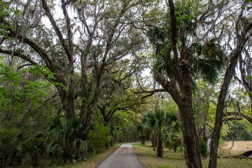 Named for a word in the Muscogee (Creek) language that means “little big water” or, alternatively, “crooked river,” this 47-mile rail-trail follows the right-of-way of the old Atlantic Coast Line that eventually became CSX Transportation. Cruising from Citrus Springs to Dade City, cyclists parallel the curvy Withlacoochee River in the southern section that radiates the most serenity. It also provides the best birding as it wends through the Croom Wildlife Management Area in Withlacoochee State Forest. Dense tracts of longleaf pines and bald cypress trees harken to a time when Florida was once covered with these old growth specimens. As you pedal along, look for a flash of crimson indicating the distinct color of a red-bellied woodpecker’s crown, or a streak of powder blue from an Eastern bluebird. On the ground, a light brownish-grey mourning dove might be foraging for seeds.