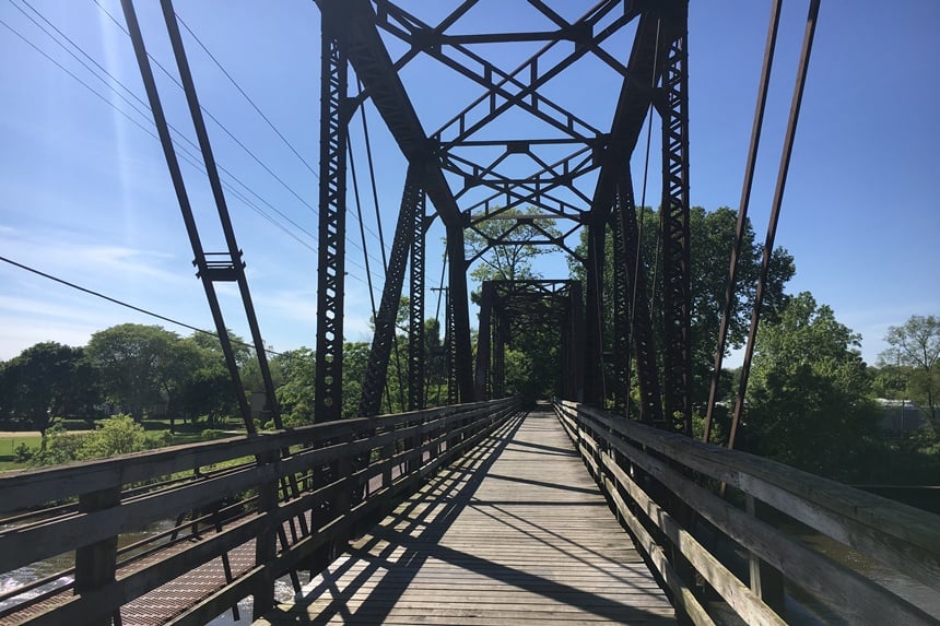 Coursing some 45 miles from Oswego to Algonquin, just outside of Chicago, this sylvan rail-trail parallels the Fox River, providing scenic views of myriad islets and bridges traversing it. Formed from the abandoned stretches of three railroad corridors, this bucolic route passes numerous serene green spaces such as Les Arends Forest Preserve. When you get off your bike in a leafy spot, you might see any of two dozen different varieties of colorful warblers hunting for insects among tree branches — listen for their loud chirps and whistles. With the trail’s proximity to the river, bird watching is certainly a delight, whether you spy a common nighthawk darting across the sky or a great blue heron perching on the riverbank. A bald eagle or an osprey may even soar overhead.
