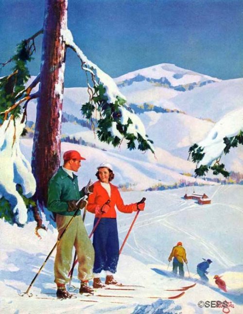 Couple Wearing Snowshoes McClelland Barclay February 1, 1930 Open Couple Wearing Snowshoes in a modal window