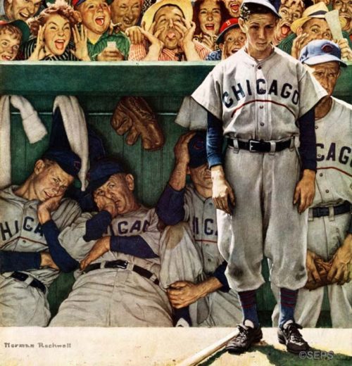 Bottom of the Sixth (Three Umpires) Norman Rockwell April 23, 1949 Open Bottom of the Sixth (Three Umpires) in a modal window