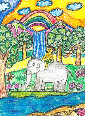 Description: “My wish is to be a jungle boy and spend time with animals, climb trees and mountains, and splash water. I want to play, eat, and sleep with animals. I love animals and greenery, and my favorite animal is an elephant.”